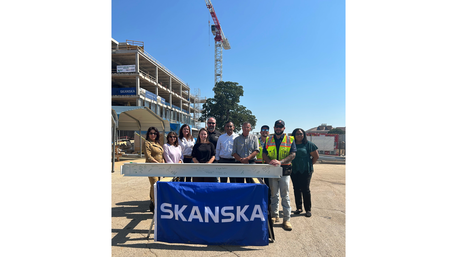 DALLAS, Oct. 7, 2025–Skanska, one of the world’s leading construction and development firms, announced it has reached a significant milestone on the University of North Texas’ main campus in Denton, Texas, with the steel topping out of the new Science and Technology Building. To celebrate the topping out, teams signed the steel beam used to top out the structure and erected and placed the final beam.